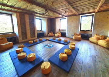 Boží – retreat centrum je krásná polosamota v lůně panenské přírody Novohradských hor. Stavba pevně zakořeněná do země díky obrovskému 300 let starému kamennému sklepu a napojená na nebe díky tvaru pyramidy poskytuje zázemí s esencí hojnosti. Výborná voda z vlastního pramene, venkovní jezírka, ve kterých je možnost koupání, sauna a k tomu rozlehlé louky uprostřed nekonečných lesů a úchvatné noční nebe. Společnost a podporu nám dělalo deset koní plemene Mangalarga marchador, se kterými jsme se každé ráno ponořili