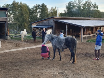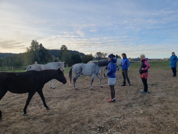 Ráno jsme si užili meditaci s koňmi a pár odvážlivců i koupání v jezírku.