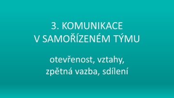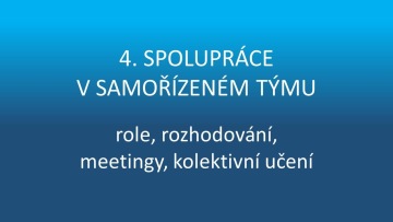 - Seznámíte se se specifiky spolupráce a komunikace v samořízeném týmu.
